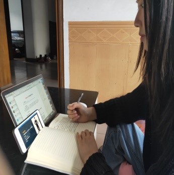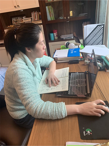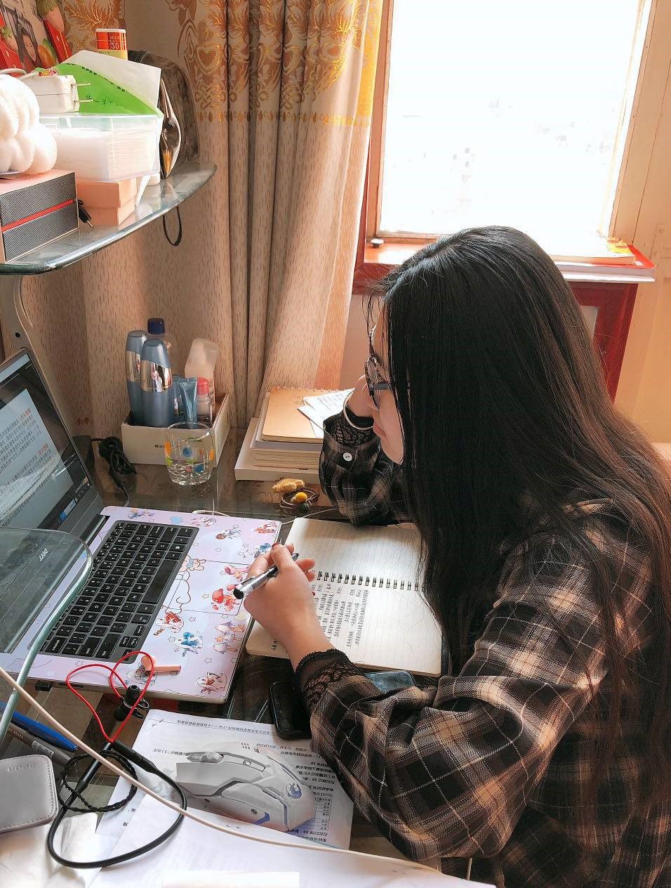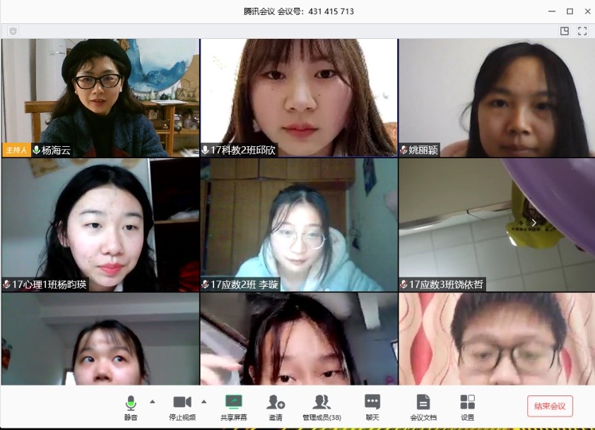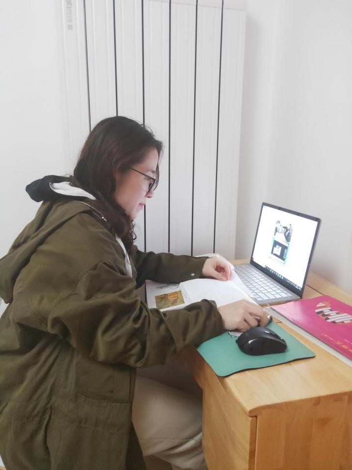从一开始的慌乱到现在的掌控自如,杨海云老师对在线教学总结说:“虽受空间距离限制,在作业辅导沟通的过程中缺乏直观,但面对每天8点就准时到空中教室的同学们,促使我更认真严谨地对待每一次教学,不管是在云端还是在教室面对面,都是在传道授业解惑,期待线下与同学们见面的那一天。”