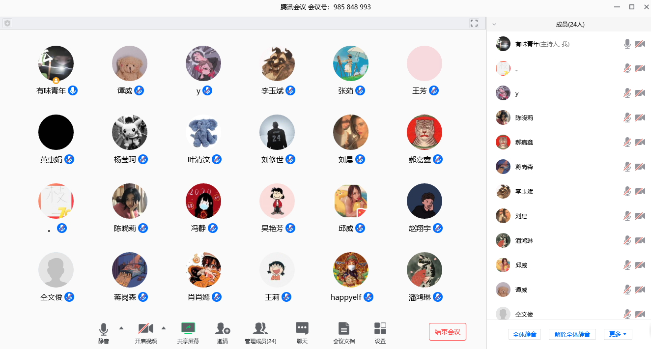 利用腾讯会议直播授课的截图