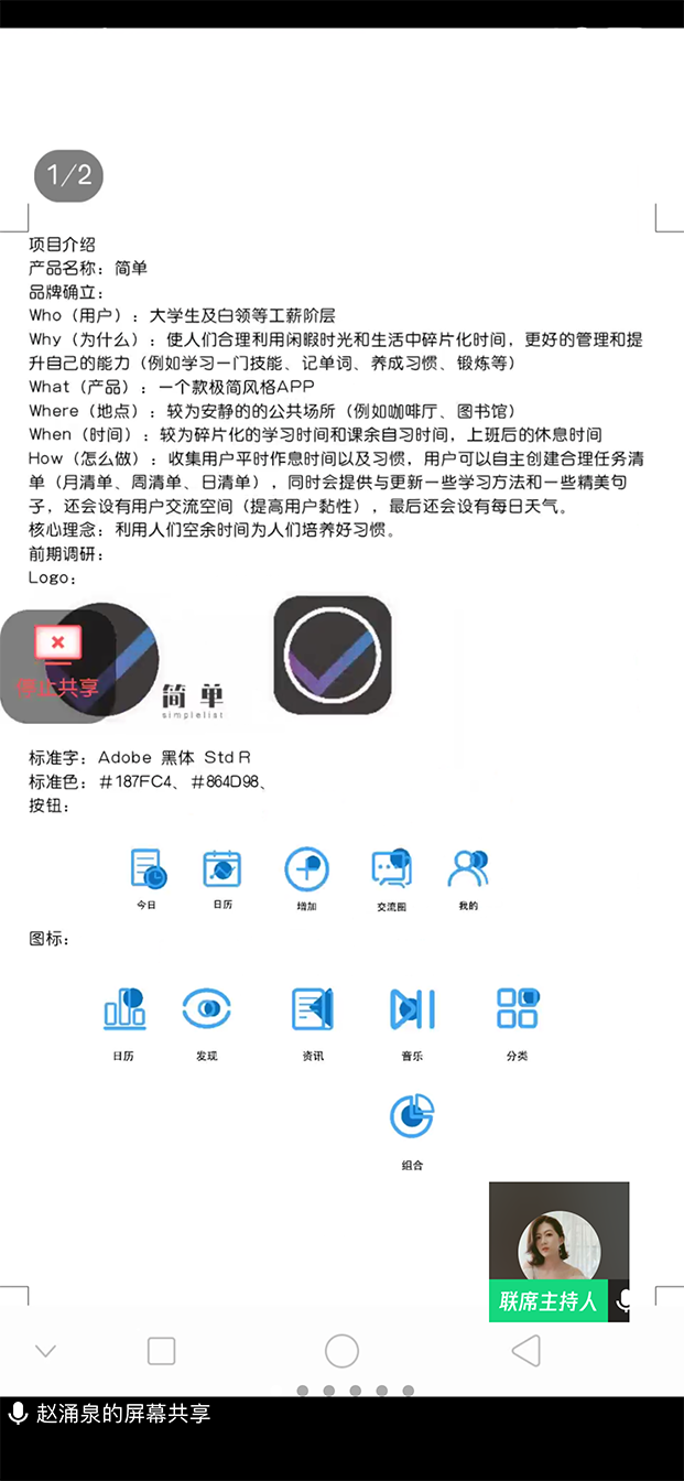 18视觉传达1A班目前正在上《交互式界面设计》课,王老师选用中国老员工慕课平台西安邮电大学《交互式界面设计》课程作为理论课程的补充,并结合了QQ群和腾讯会议的共享PPT功能开展理论教学和实践指导。