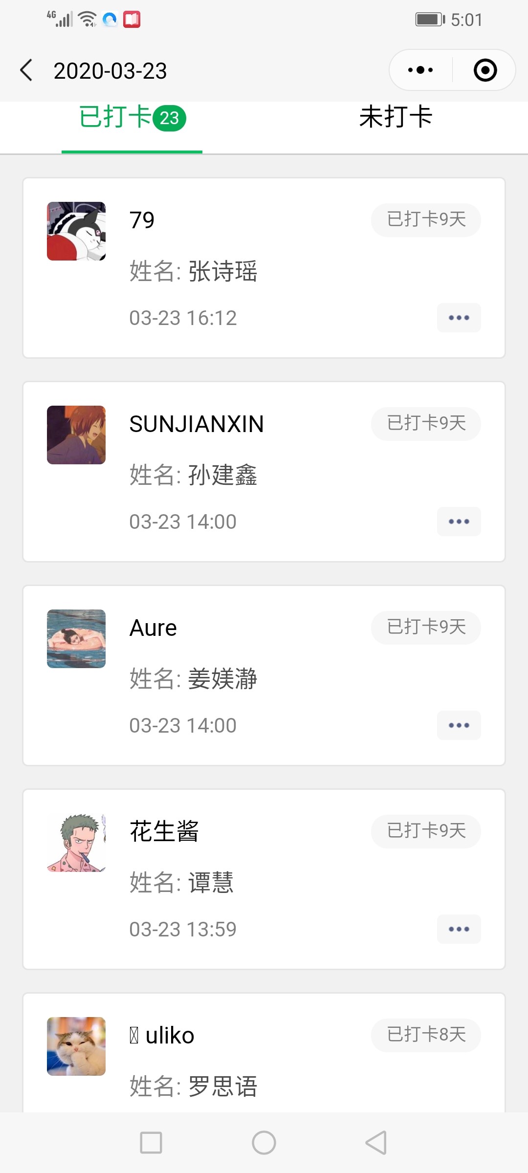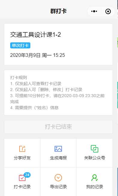 图片6 每次课前运用微信群打卡平台考勤
