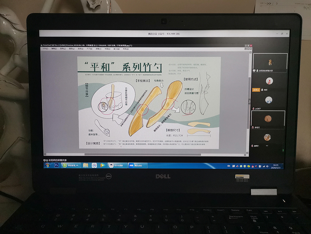 “员工在腾讯会议的软件里可以很好的跟老师和同学一起分享自己的设计作品和心得。感觉在网络这样的虚拟空间里,员工交流起来更加的放松,畅所欲言,讨论和学习的氛围特别好。”科技的便捷使师生之间的交互变得更频繁,更有效。通过多种在线教学方式结合而开展的辅导、交流、讲解等线上教学,通过电脑屏幕极大的缩短了师生之间的空间距离,从而保障了这门设计课程的顺利进行。