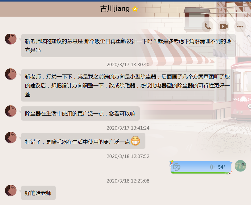 “通过近三周的探索和教学过程中的不断调整,同学们已逐渐适应线上教学,‘禁足’家中的焦虑感缓解了,线上讨论踊跃了,交流增多了,对‘设计’的思考也更深刻了;听着他们各自的设计方案分析和心得体会,此番情景和滋味真的是五味杂陈,希望早日和同学们在校园相聚。”这是靳晓彤老师记录的在线教学感受。