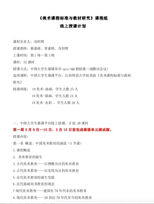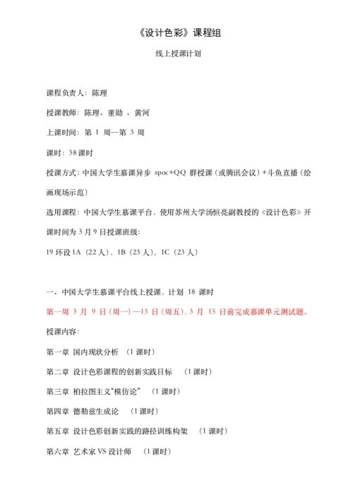 《设计色彩》线上教学计划 《美术课程标准与教材研究》课程组线上教学计划