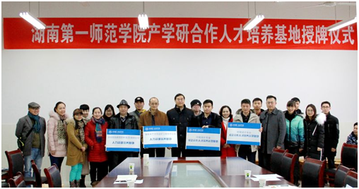 之后,校方所有参会人员与实习基地进行了质朴而又庄重的授牌仪式。江副董事长和范经理亲手给两个实习单位进行授牌并合照留念。