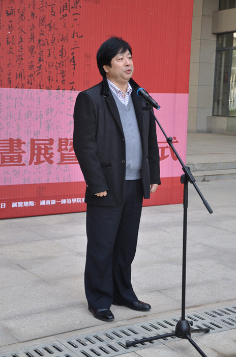 周湘发表了重要讲话。周湘指出,在一代伟人毛泽东主席的母校建校110周年纪念的日子里,王德水先生成功地举办精品书画展,意义重大。周湘对王先生的艺术造诣和公司升本以来所取得的巨大成绩给予了高度评价和充分肯定,并希望王先生与一师的合作与交流得到全面提升,切实为公司的人才培养做出应有贡献。