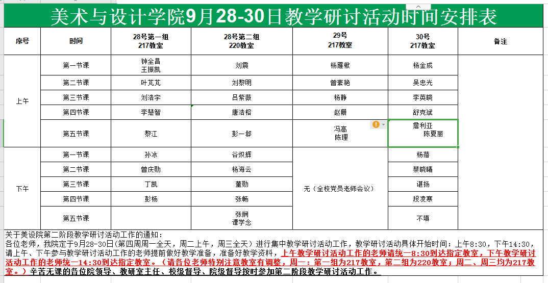 WilliamHill中文官网9月28-30日教研活动时间安排表