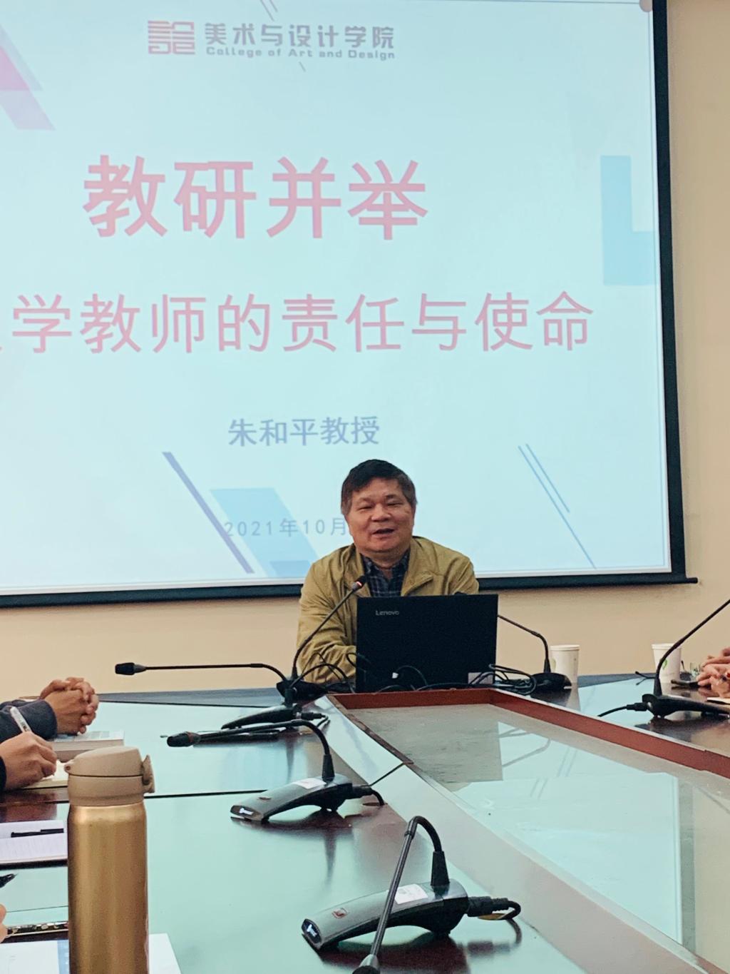 10月27日上午9点,WilliamHill中文官网特邀教授、博士生导师、湖南省艺术学科带头人、湖南省艺术教育指导委员会副主任、教育部艺术学理论教学指导委员会委员朱和平教授做客美设院,以“教研并举——大学教师的责任与使命”为主题开展讲座,副经理蔡惠萌、美术学科带头人范迎春教授、李华教授及全体教师参加本次讲座,讲座由张娴经理主持。