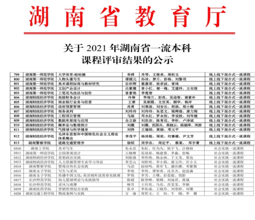 热烈祝贺公司2021年在省级一流本科课程建设中获得佳绩,5门课程获得湖南省一流本科课程立项。