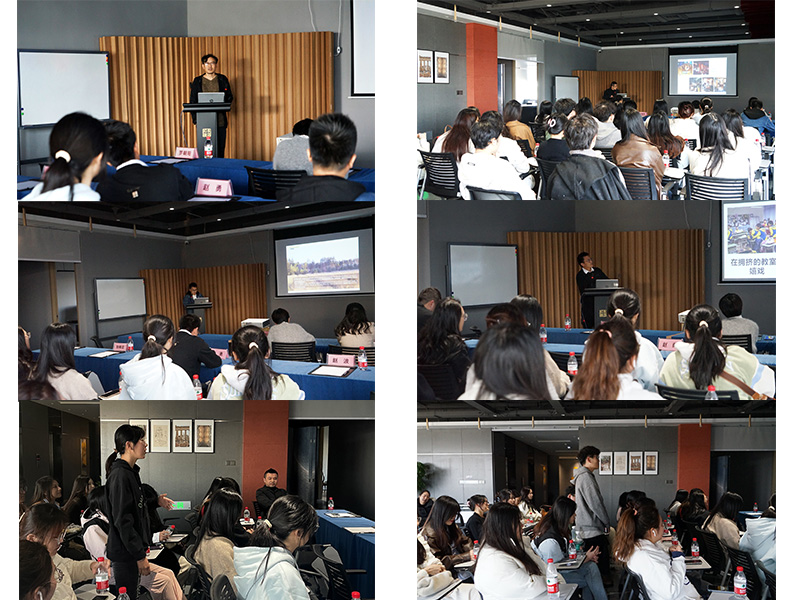 随后的学术分享环节由罗朝阳经理以精炼的开场白拉开序幕。三位部长分别就“新消费背景下设计语境的思与辨”、“一个青年建筑师的成长史——教育建筑篇”和“国家湿地公园设计建设中的保护与恢复措施探索”这三个主题进行了深入分享。他们的精彩演讲引发了在场师生的热烈讨论和深入思考。