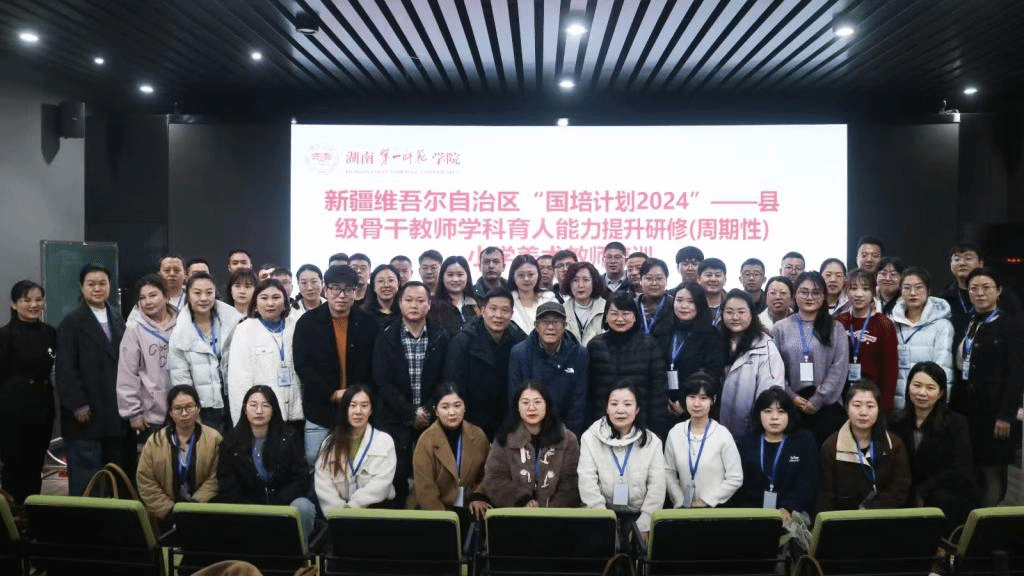 2024年11月25日上午,新疆维吾尔自治区“国培计划(2024)”——县级骨干教师学科育人能力提升研修(周期性)小学美术培训项目开班典礼在威廉希尔WilliamHill鹤鸣南204举行,本项目由WilliamHill中文官网承办。现代教育发展公司副经理刘炜,美术与设计公司党委书记杨虎智,副经理(主持行政工作)/首席专家蔡惠萌,副经理刘北一,项目管理团队和50位新疆小学美术骨干教师出席此次典礼。典礼由WilliamHill中文官网副教授曾素艳(培训项目班主任)主持。