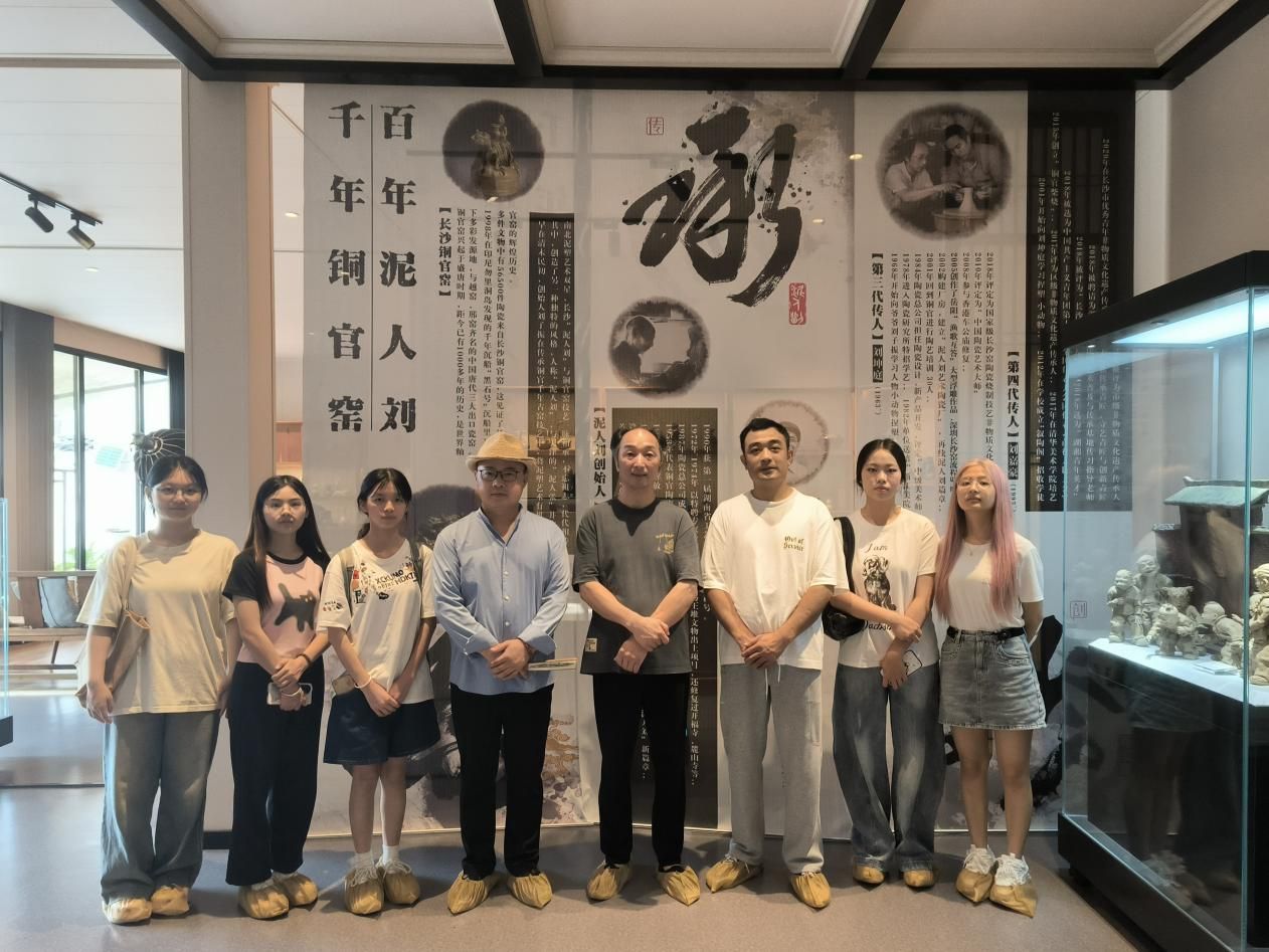 2005年6月5日,威廉希尔WilliamHill美术学系副主任李楚智带领工作室22级美术学专业6名同学,奔赴望城区铜官镇长沙泥人刘陶艺有限公司进行走访。在公司厂区和展厅与非物质文化遗产第三代“泥人刘”传人、中国工艺美术大师刘坤庭及其弟子庄函恺展开了深度交流,以青春之姿为铜官窑非遗技艺传承与创新发展注入活力,践行公司公司走访企业、聚焦就业与公司产品合作的任务。