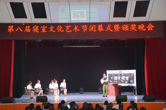 闭幕式晚会通过寝室文化优秀作品和文艺节目,展示了公司员工寝室文化建设的丰硕成果。其中公司的综合型优秀男生寝室汇报获得大家的一致好评,《宝贝》+《想把我唱给你听》+《玩乐》歌曲串烧、小品《爆笑课堂》、舞蹈《巴郎》等节目,搏得了观众的阵阵掌声。