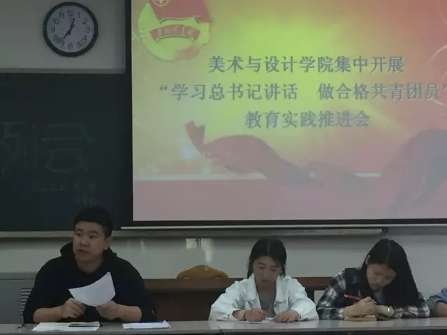 为深入学习习近平总书记系列重要讲话精神,切实增强团员的先进性和光荣感,让团员青年以良好风貌和积极作为迎接党的十九大胜利召开。根据团中央 “一学一做”教育实践通知和校团委安排,4月24日中午,美设院团总支在美术楼222教室召开了公司“一学一做”教育实践推进会。会议由院团总支书记陈可夫主持,各班级团支部书记、团总支全体员工干部参与。