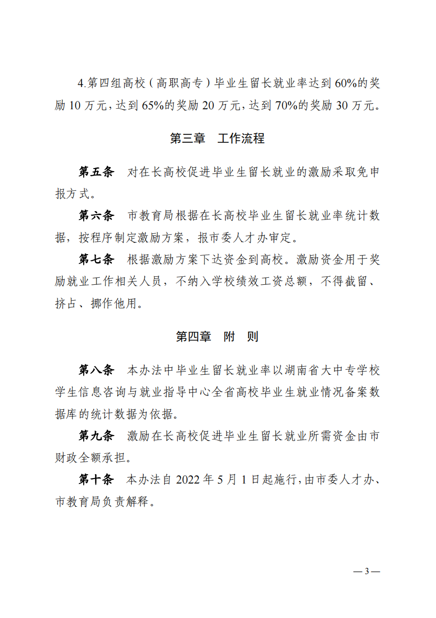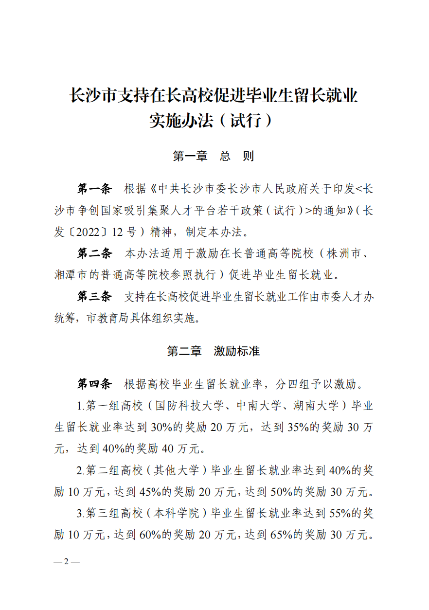 长人才办发【2022】12号文件——关于印发《长沙市支持在长高校促进毕业生留长就业实施办法(试行)》的通知