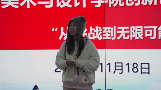 随后,朱思憬同学以“创新创业,基于无限可能”为题进行了演讲。她从结合自身的实习和参赛经历,讲述了如何从日常生活中发现机会、整合资源,将想法转化为可行的创业项目。对于同学提出的当与队员们产生分歧时如何协商等问题,她也用自己的经历做出了完美回答。