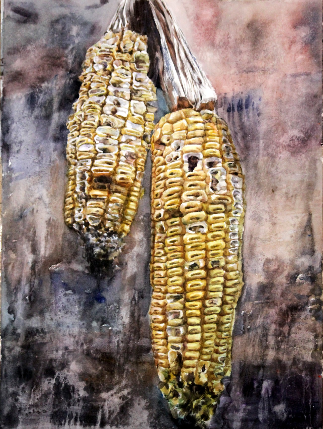 彭一邶 水彩画 干玉米,54X74cm 2017