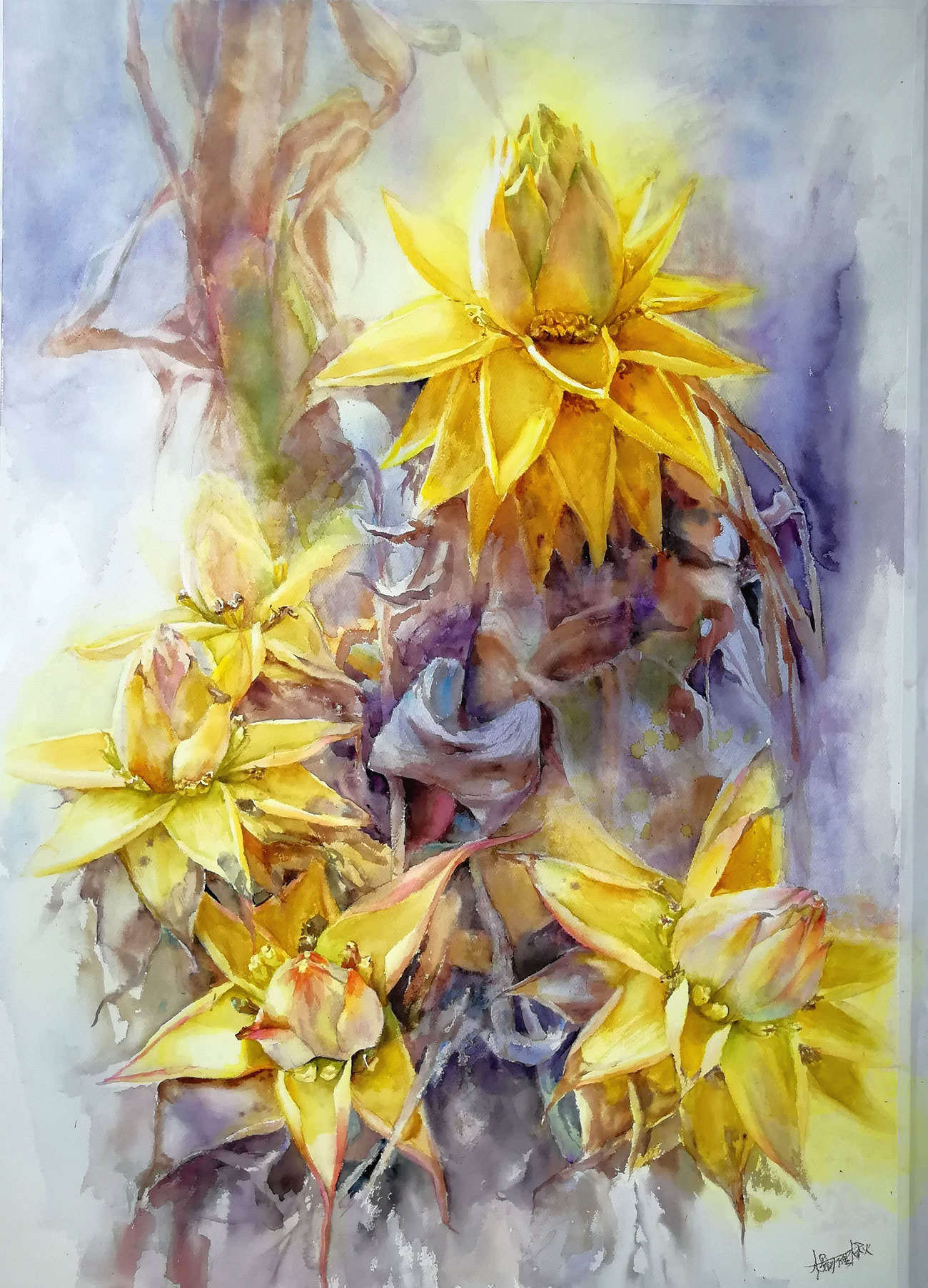 杨雁楸 水彩画 金色花语79×110cm 2019