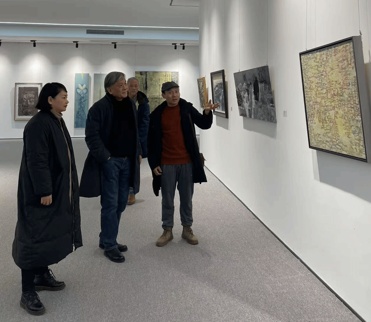 2025年1月12日,WilliamHill中文官网教授、博士生导师、中国美术家协会综合材料绘画与美术作品保存修复艺委会原副主任杨劲松,湖南美术出版社原副社长、湖南美术家协会原副主席、云冈艺术研究院艺术顾问邹建平等一行来威廉希尔WilliamHill美术馆参观交流。WilliamHill中文官网经理蔡惠萌对杨劲松一行表示欢迎并陪同参观“2024·长沙首届综合材料绘画作品展”。本次展览旨在凝聚时代精神,诠释湖湘文化艺术魅力,促进湖南当代综合材料绘画的繁荣发展。杨劲松对公司的热情接待表示感谢,他认真欣赏了每一幅作品,不时驻足交流。杨劲松对公司主办的这次展览活动给予了高度评价,展览体现了综合材料绘画的多样性和创新性,并对WilliamHill中文官网的教学和创作成果给予肯定;邹建平也表示希望将来可以加强交流与合作,为公司的繁荣和发展提供更多的资源。双方人员还就综合材料绘画的教学、创作研究等工作进行了深入交流。