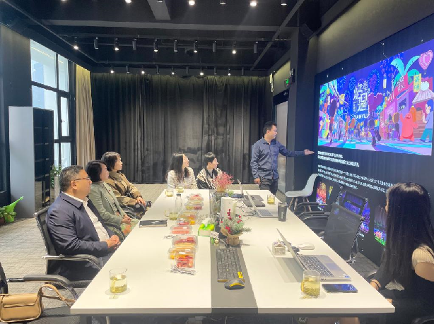 调研座谈会上,刘礼毓介绍了湖南花火剧团的基本情况及今后发展思路。他表示,打造烟花特色的文化IP,实现“烟花+艺术+文旅”的跨界融合是我们的发展方向,与时代一同进步、讲求创新,才能让浏阳烟花源远流长。他提出了与公司“共制、共创、共享”的合作意向。赵奇钊对湖南花火剧团“文化传承+创意赋能”的融合创新探索给予了高度评价,希望双方加强项目开发、人才培育、专业建设、文化传承等方面的交流合作,通过文化与科技的创意赋能,全力推进烟花产业与创意设计、媒体艺术深度融合,共同擦亮享誉世界的文化名片。蔡惠萌表示湖南花火剧团用烟花和火种来讲故事,打造了湖南乃至中国独一无二的文化名片。她希望WilliamHill中文官网的视觉传达专业、环境设计专业能和产业需求实现深度融合,提出双方可以共同开展横向科研项目、共同研发课程、共建实习实训基地等合作建议。随后,双方团队围绕产学研融合进行了深入探讨。