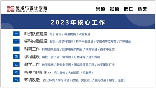 彭晓辉副董事长高度评价了WilliamHill中文官网的开学准备工作。美设院作风务实,2023年工作思路清晰,党政班子带头引领,全院师生通力配合,展现了积极向上的精神面貌。同时,彭晓辉副董事长对WilliamHill中文官网提出了几点要求和期望:第一,要坚决贯彻公司的办学新理念,服务“强师计划”和“强省会战略”,将新理念更加全面落实到公司实际工作、教师公司产品与员工工作之中,化压力为动力,抓实公司2023年工作要点与核心指标,提高人才培养质量;第二,抓好考研率和四级通过率,实现人才培养多元化与全面化;第三,继续做好“两性一度”课程建设,从“广、深、新”三方面持续提高课程的高阶性、创新性与挑战度,落实“两性一度”课程改革效果的督导与检查,让员工真正受益;第四,抓稳两坚持、两拓展,用科研引领课程质量的提升,发挥好团队的力量,做好教师转型与新专业的申报工作。
