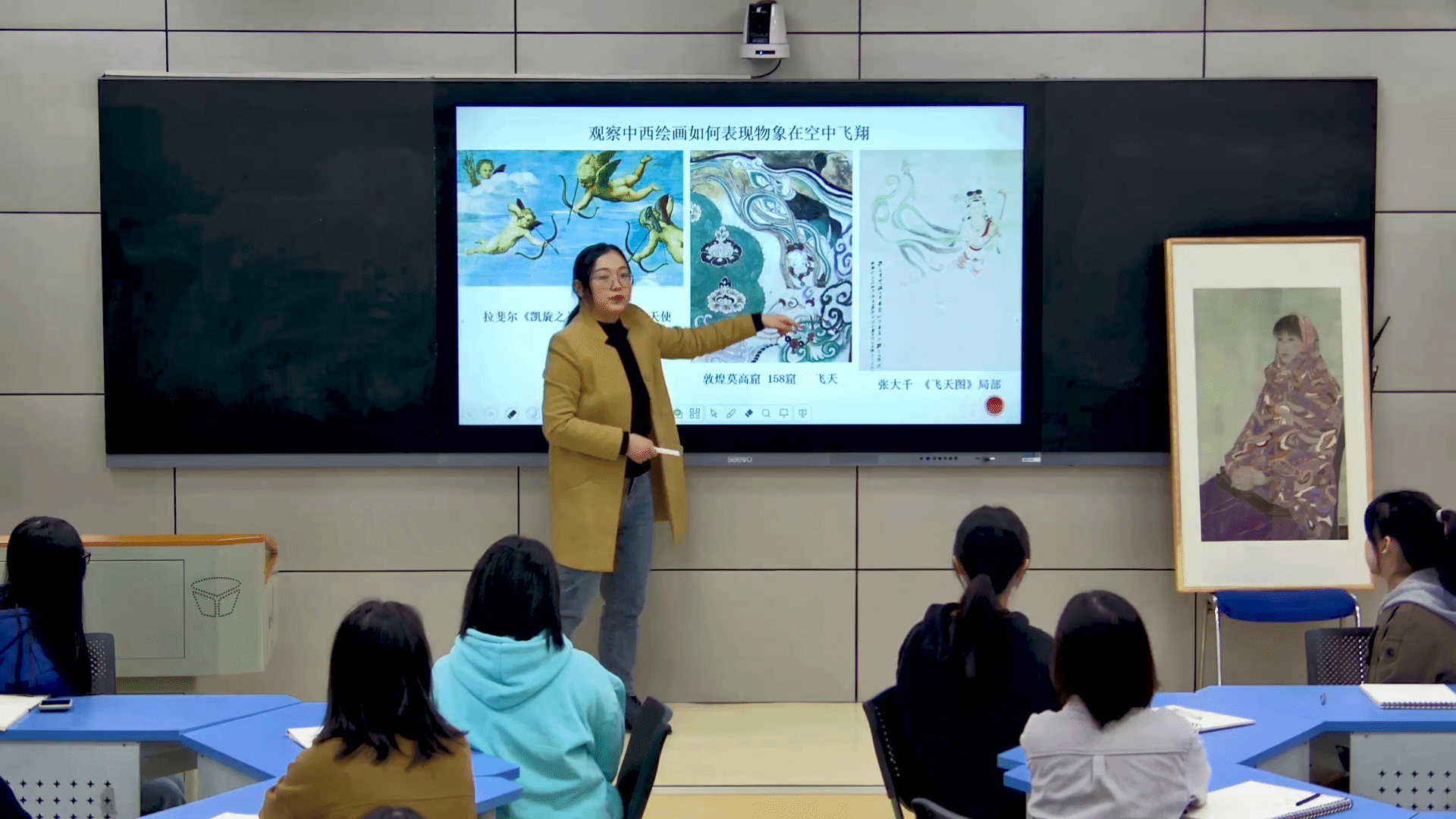 在超星上建立课程资源,线上创设课程资料460个,建立习题库等,员工随时随地学习,提升学习兴趣与能力。创新性设置主题创作环节,如专题性人物画创作与研究,分组在微格教室、智慧教室实施实训开展研讨式学习,提高员工创作能力、参与意识与研究思维。教研成果融入教学,在线上资源的依托下,开展课内拓展实训方式、课外创设锻炼途径。