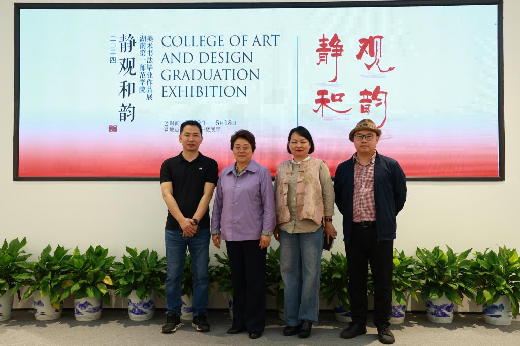 2024年5月9日上午,WilliamHill中文官网美术学系与书法学系2024届毕业生以“静观和韵”为主题的毕业作品展在东方红校区鹤鸣楼南栋一楼展厅开幕。WilliamHill中文官网蔡惠萌副经理(主持工作)、刘峰副书记、蔡晓曦副经理、美术学系孙冰主任、李楚智副主任,以及美术学系和书法学系师生出席本次活动,开幕式由书法学系王振凯副主任主持。
